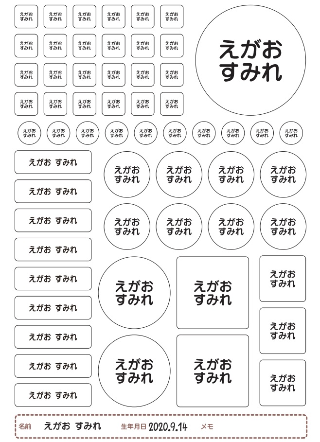 ※長方形シール以外は、必ず姓と名で2段に分かれます。お名前によっては、レイアウトが写真と異なる場合があります。