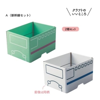 中に入って電車ごっこができるクラフト素材。新幹線や電車のデザインでごっこ遊びを楽しめます。子どもが持ちやすいように持ち手を付けました。畳めるので収納場所にも困りません。